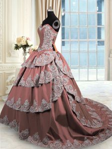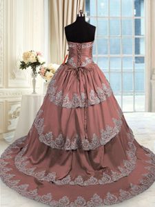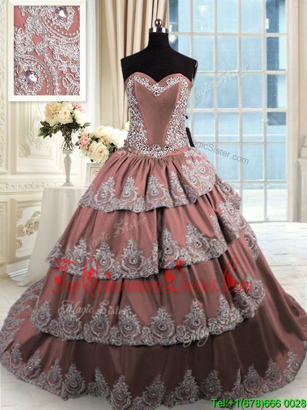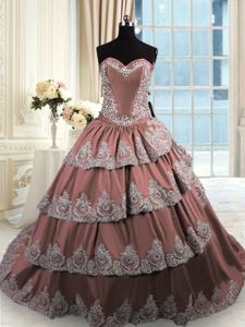 Lovely Brown Sweetheart Lace Up Beading and Appliques and Ruffled Layers 15th Birthday Dress Court Train Sleeveless