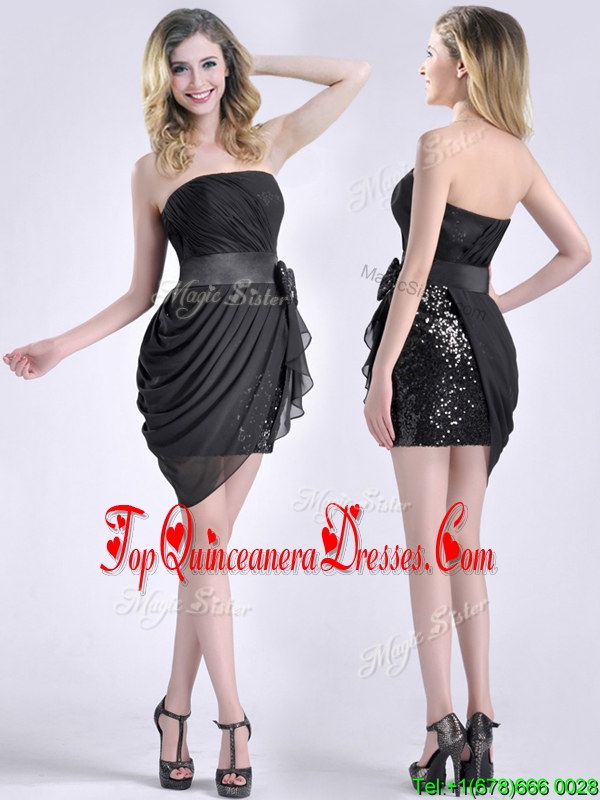 Lovely Column Bowknot Short Dama Dress in Chiffon and Sequins