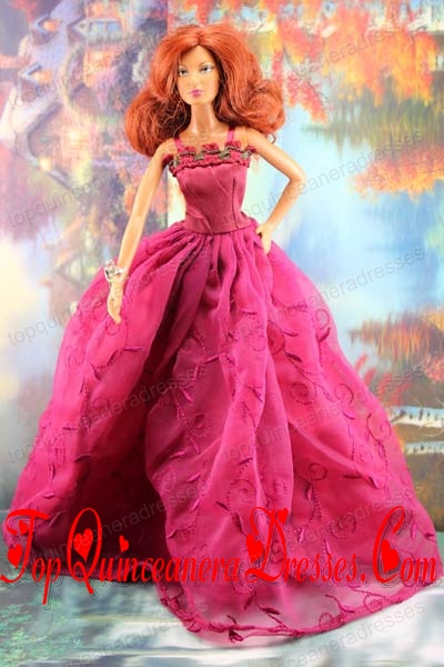 Lovely Embroidery For Hot Pink Barbie Doll Dress