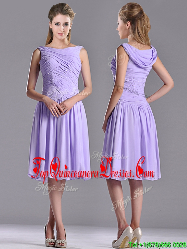 Lovely Empire Chiffon Lavender Dama Dress with Beading and Ruching