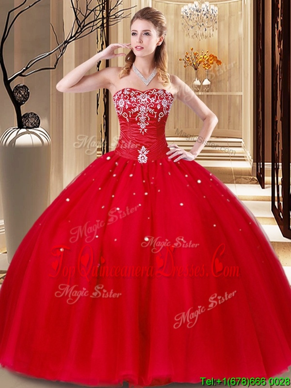 Lovely Floor Length Lace Up Quinceanera Dresses Red and In for Military Ball and Sweet 16 and Quinceanera with Beading and Embroidery
