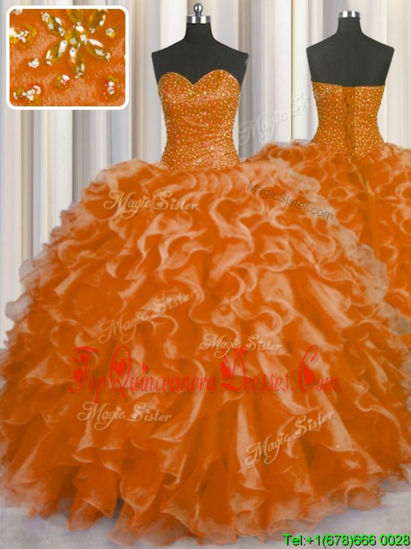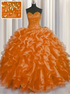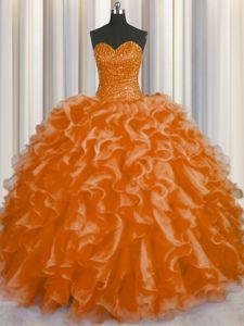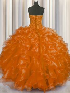 Lovely Floor Length Yellow Green 15th Birthday Dress Organza Sleeveless Beading and Ruffles and Pick Ups