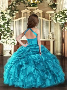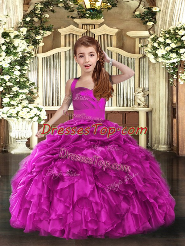 Lovely Fuchsia Ball Gowns Organza Straps Sleeveless Ruffles Floor Length Lace Up Little Girls Pageant Dress