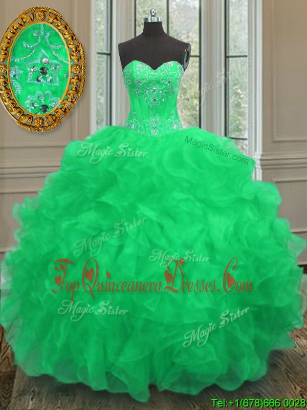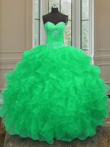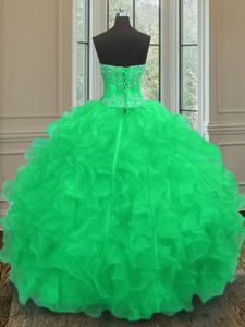 Lovely Green Ball Gown Prom Dress Military Ball and Sweet 16 and Quinceanera and For with Beading and Embroidery and Ruffles Sweetheart Sleeveless Lace Up