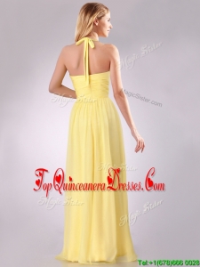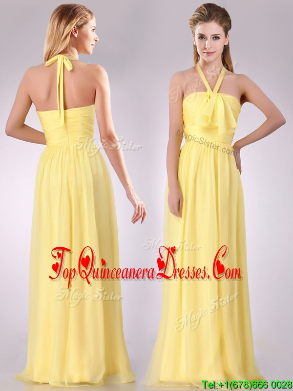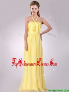 Lovely Halter Top Chiffon Ruched Long Dama Dress in Yellow