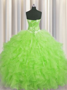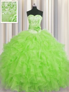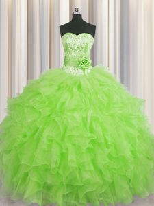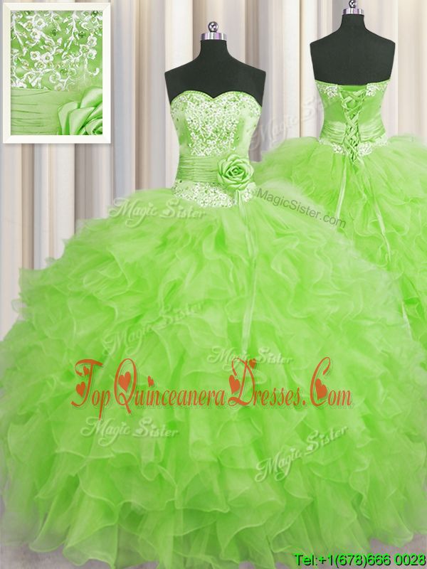 Lovely Handcrafted Flower Organza Sweetheart Sleeveless Lace Up Beading and Ruffles and Hand Made Flower Quinceanera Dresses in