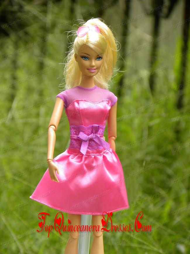 Lovely Handmade Rose Pink Scoop Appliques Sash For Barbie Doll Dress
