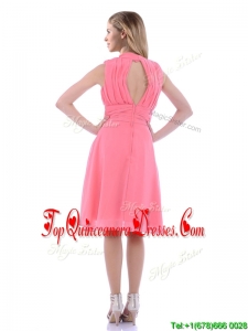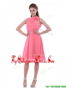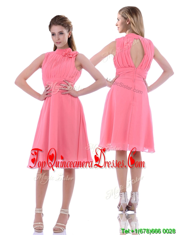 Lovely High Neck Handcrafted Flowers Dama Dress with Open Back