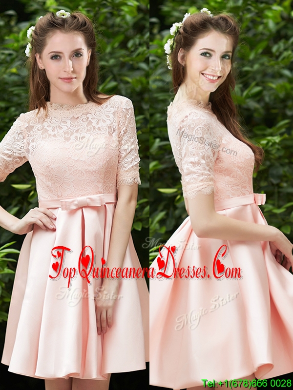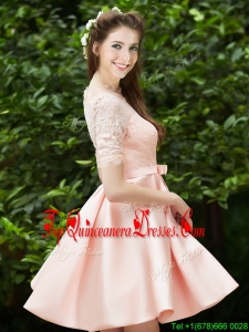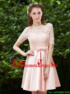 Lovely High Neck Short Sleeves Quinceanera Dama Dress with Lace and Bowknot