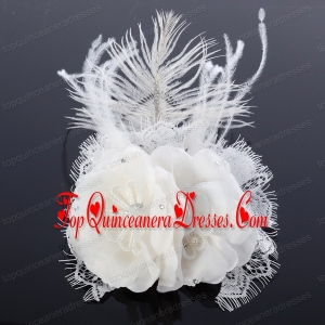 Lovely Lace Feather and Lace Outdoor Fascinators with Imitation Pearls