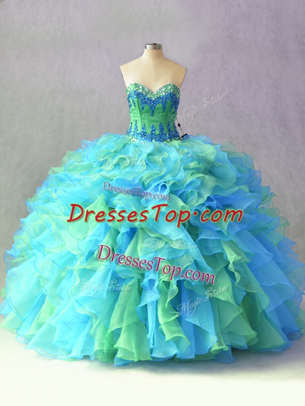 Lovely Multi-color Sweetheart Lace Up Beading and Ruffles Sweet 16 Quinceanera Dress Sleeveless