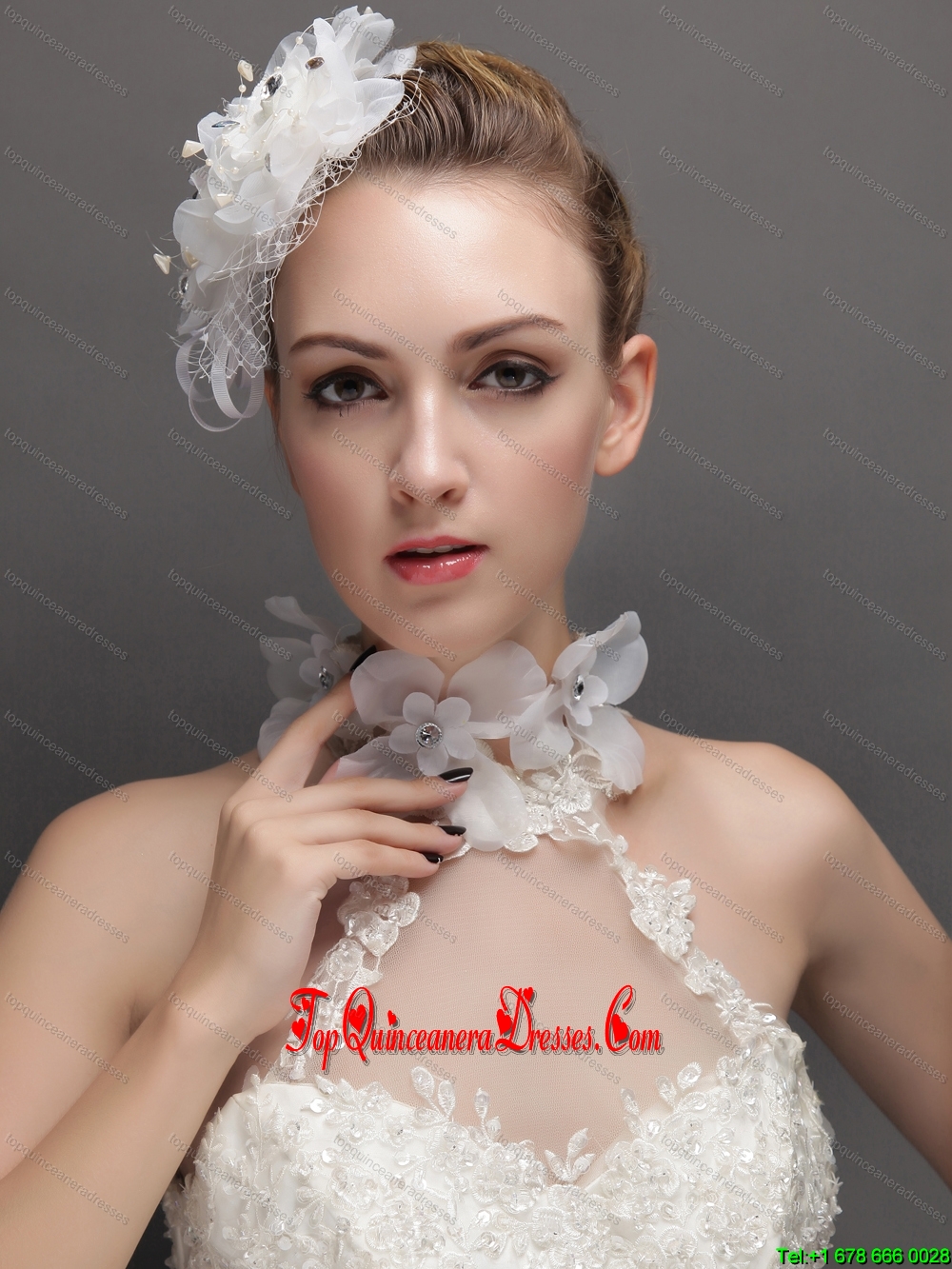 Lovely Net With Rhinestones Adorned Flowers Womens Fascinators Floral Choker Set