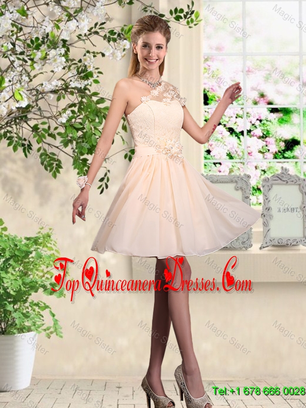 Lovely One Shoulder Dama Dresses with Hand Made Flowers