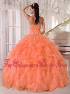 Lovely Orange Ball Gown Strapless Organza Fashionable Quinceanera Dresses with Beading and Ruffles