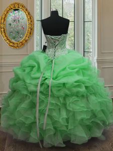 Lovely Orange Red Sweetheart Neckline Beading and Ruffles Sweet 16 Dress Sleeveless Lace Up