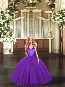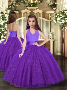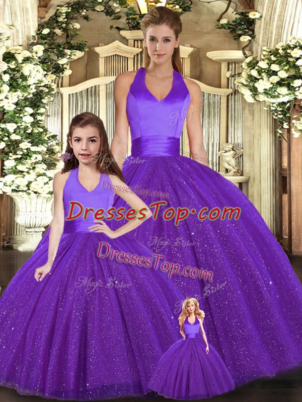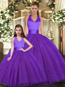 Lovely Purple Ball Gowns Ruching Quinceanera Gowns Lace Up Tulle Sleeveless Floor Length