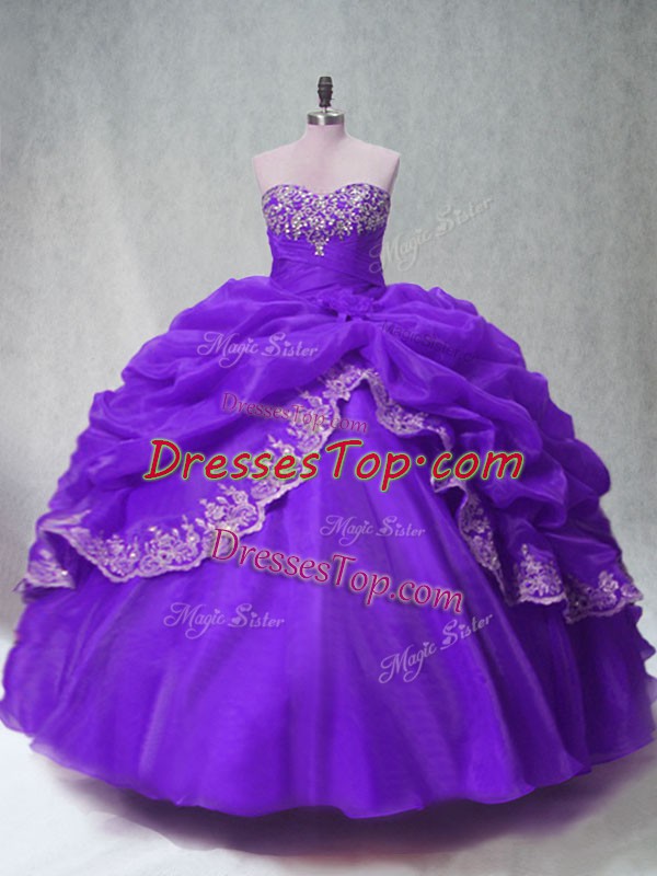 Lovely Purple Sleeveless Beading and Appliques and Pick Ups Floor Length Quinceanera Gown