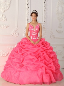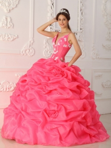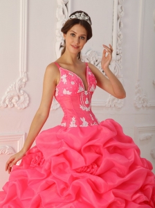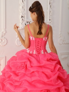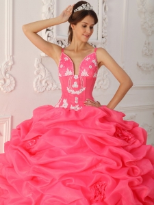 Lovely Quinceanera Dress with Straps Pick-ups Watermelon