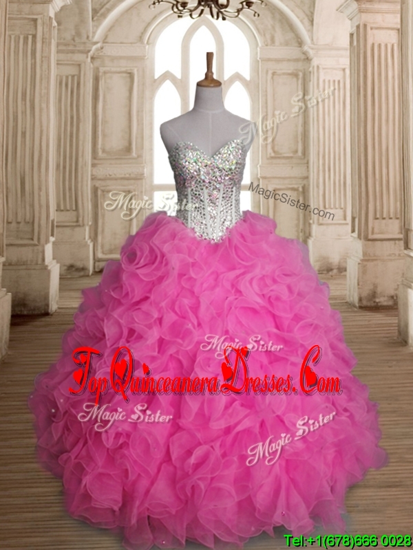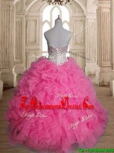 Lovely Rose Pink Sweet 16 Dress with Beading and Ruffles