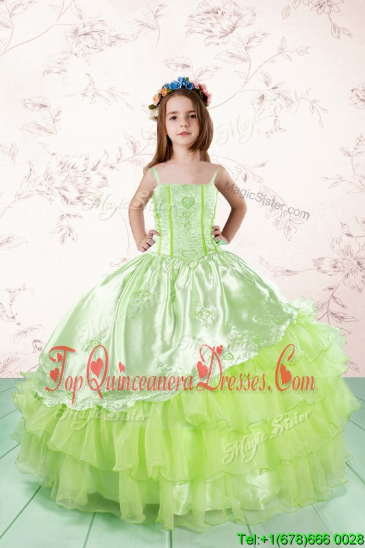 Lovely Sleeveless Floor Length Embroidery and Ruffled Layers Lace Up Pageant Dress with Yellow Green