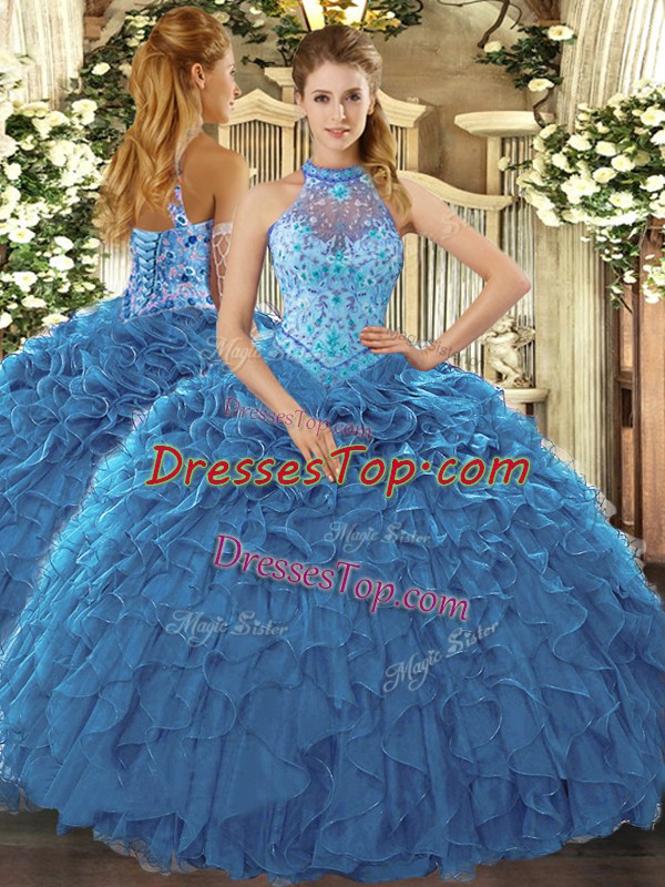 Lovely Sleeveless Lace Up Floor Length Beading and Ruffles Quince Ball Gowns
