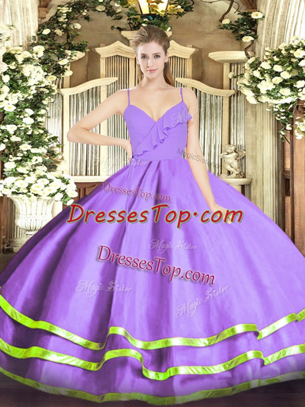 Lovely Spaghetti Straps Sleeveless Zipper Ball Gown Prom Dress Lavender Organza