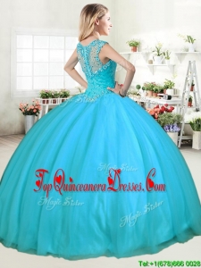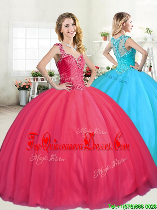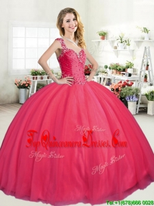Lovely Straps Big Puffy Beading Quinceanera Dress in Coral Red