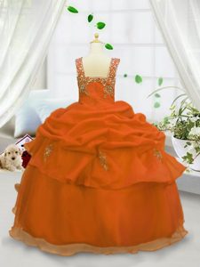 Lovely Straps Sleeveless Girls Pageant Dresses Floor Length Beading and Pick Ups Orange Organza