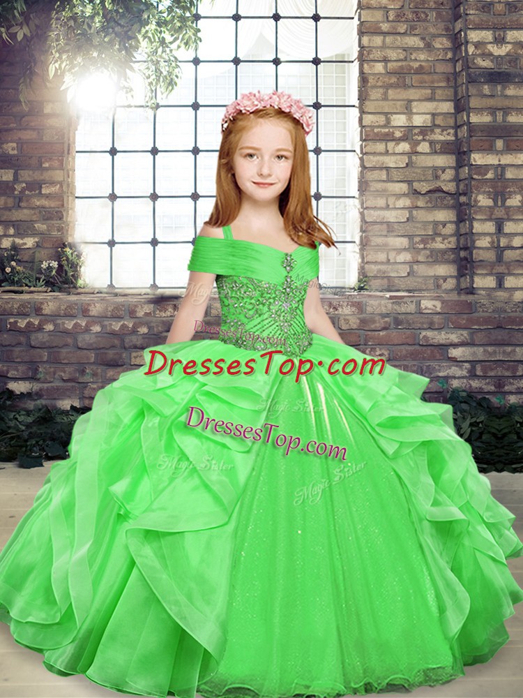 Lovely Straps Sleeveless Organza Kids Formal Wear Beading and Ruffles Lace Up