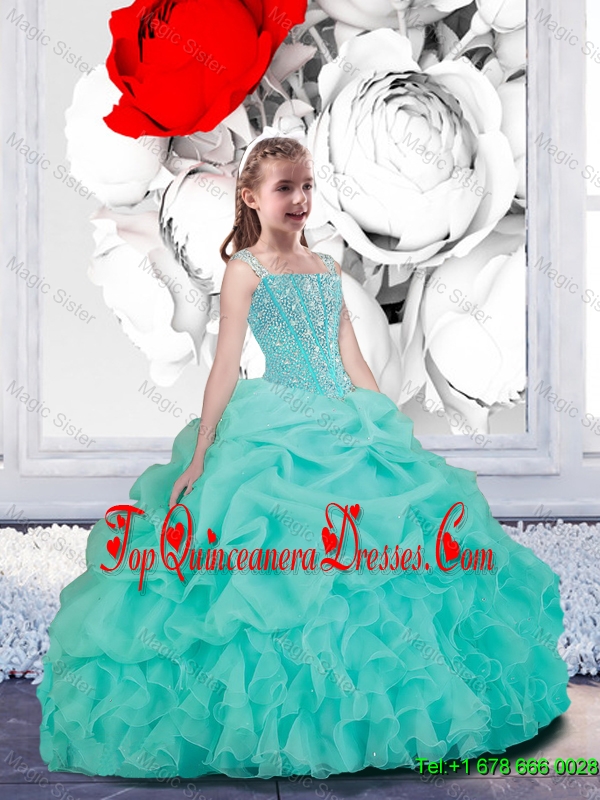 Lovely Straps Turquoise Organza Mini Quinceanera Dresses for 2016