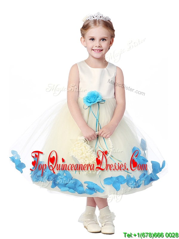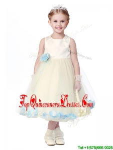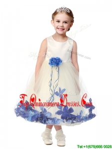 Lovely Tea Length Scoop Mini Quinceanera Dress with Hand Made Flowers and Appliques