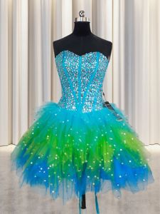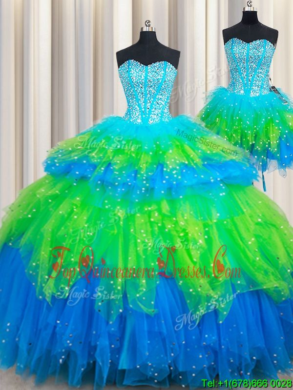 Lovely Three Piece Multi-color Tulle Lace Up Sweetheart Sleeveless Floor Length Quinceanera Gowns Beading and Ruffled Layers