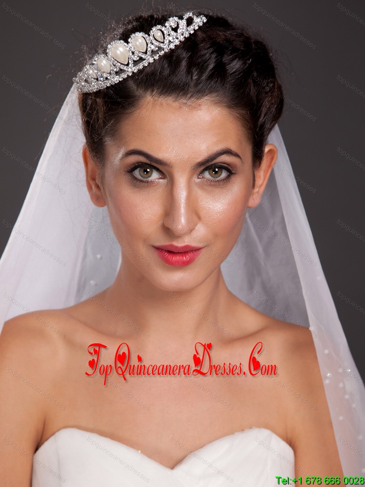 Lovely Tiara With Beading and Drop Pearl Decorate