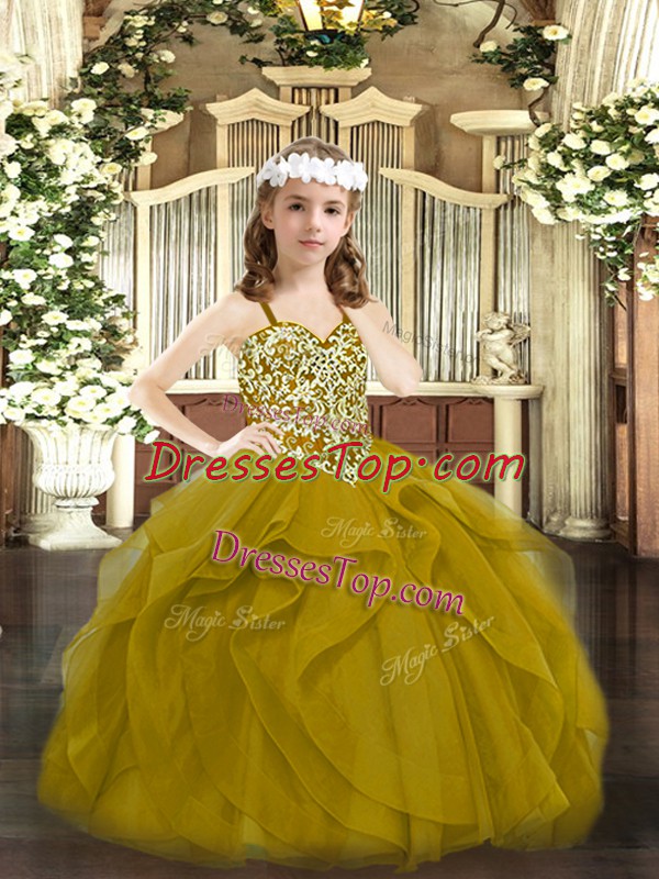 Lovely Tulle Sleeveless Floor Length Little Girls Pageant Dress and Beading and Ruffles