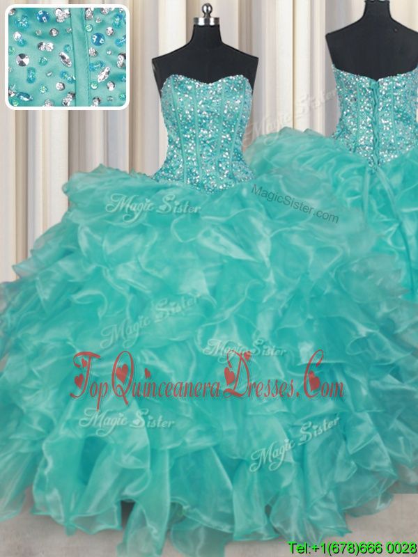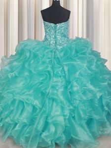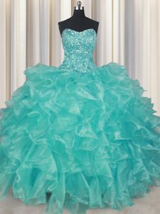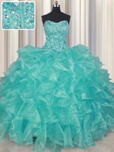 Lovely Turquoise Lace Up Sweetheart Beading and Ruffles 15 Quinceanera Dress Organza Sleeveless