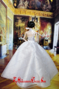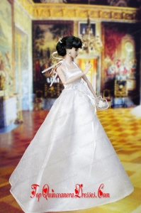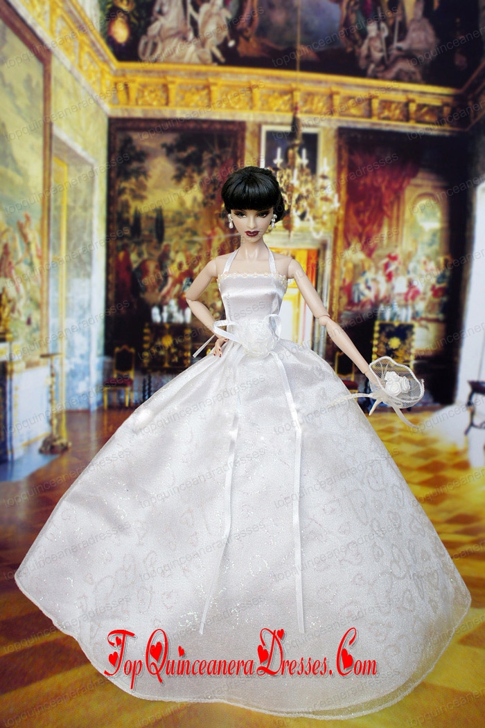 Lovely Wedding Dress For Barbie Doll With Hand Made Flowers