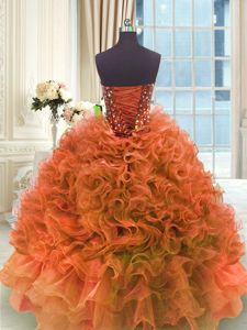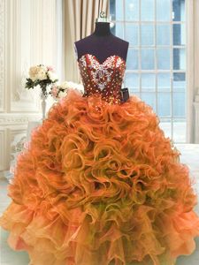 Low Price Blue Sweetheart Neckline Beading and Ruffles Quince Ball Gowns Sleeveless Lace Up