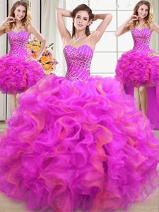 Low Price Four Piece Beading and Ruffles Ball Gown Prom Dress Multi-color Lace Up Sleeveless Floor Length