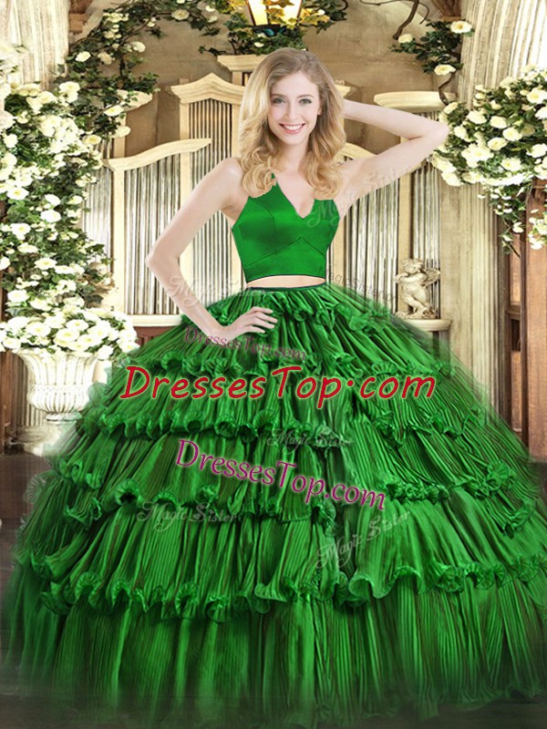 Low Price Green Zipper Halter Top Ruffled Layers Sweet 16 Quinceanera Dress Organza Sleeveless