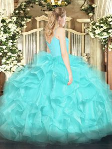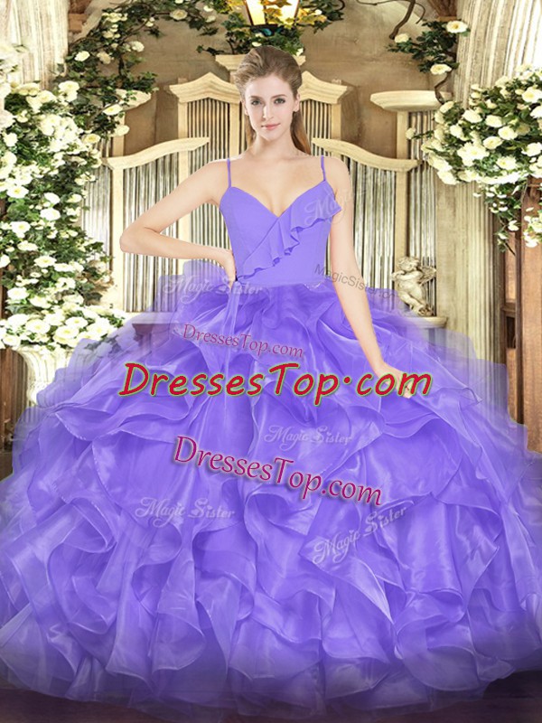 Low Price Lavender Organza Zipper Quince Ball Gowns Sleeveless Floor Length Ruffles