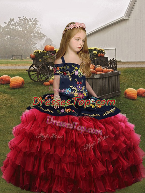 Low Price Organza Sleeveless Floor Length Pageant Gowns For Girls and Embroidery