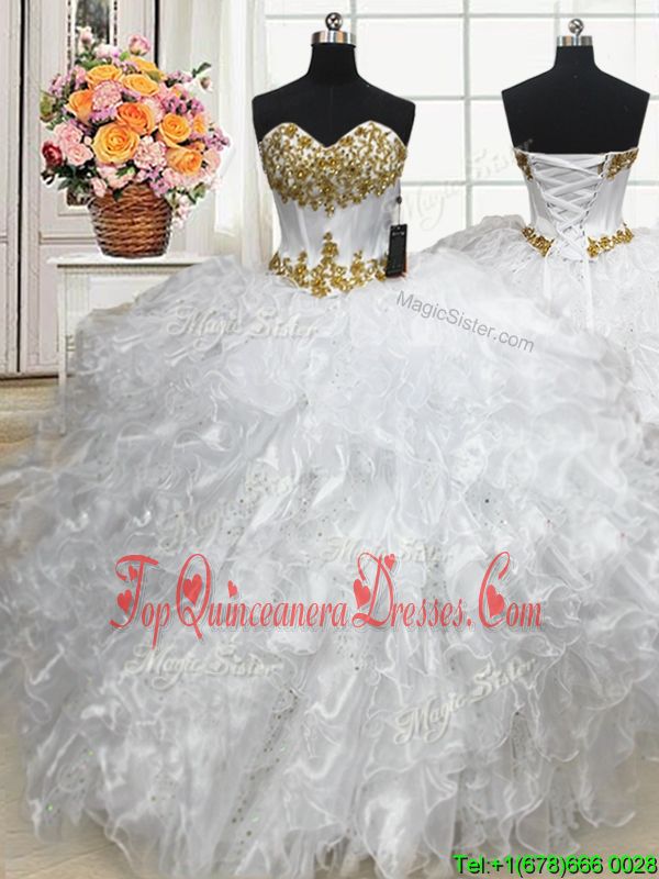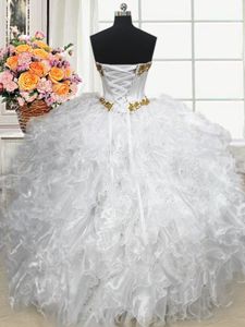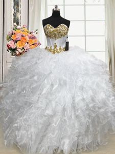 Low Price Organza Sweetheart Sleeveless Lace Up Beading and Ruffles 15 Quinceanera Dress in White
