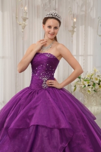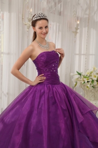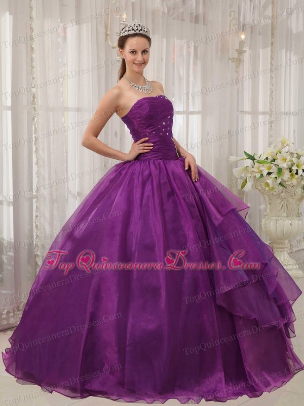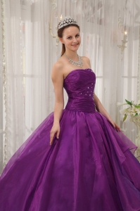 Low Price Purple Quinceanera Dress Strapless Organza Puffy