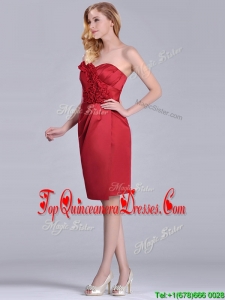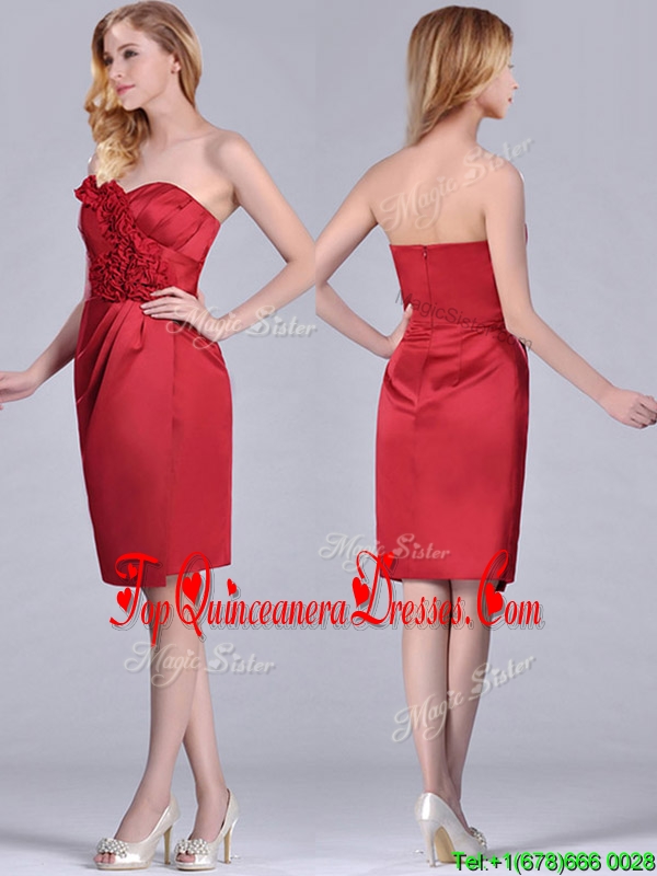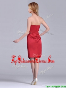 Low Price Red Column Satin Knee Length Dama Dress with Ruffles