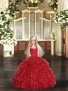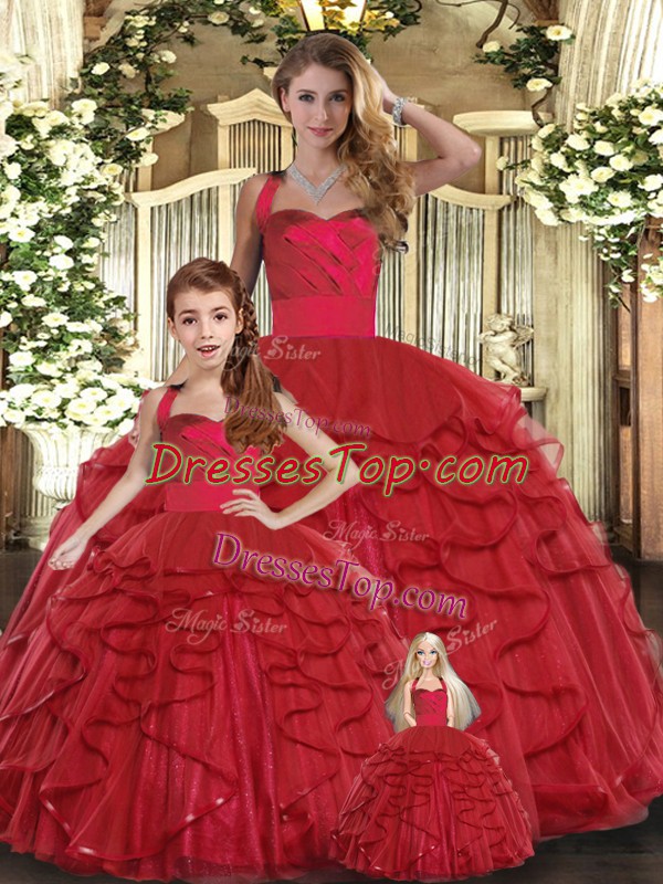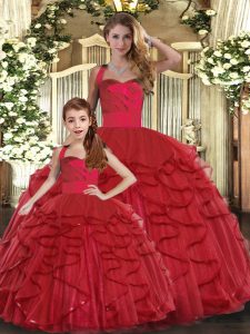 Low Price Red Sleeveless Floor Length Ruffles Lace Up 15 Quinceanera Dress