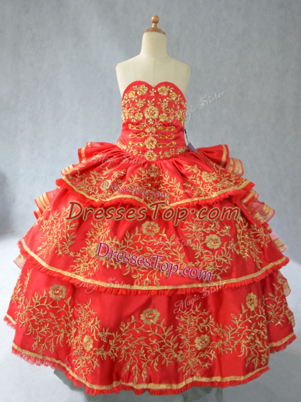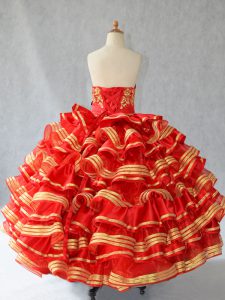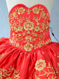 Low Price Red Sleeveless Satin Lace Up Little Girl Pageant Dress for Wedding Party
