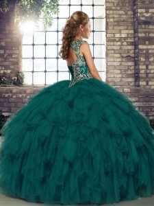 Low Price Sleeveless Organza Floor Length Lace Up Sweet 16 Dresses in Green with Beading and Ruffles
