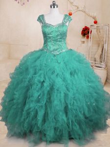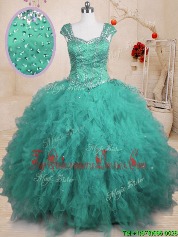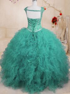 Low Price Square Cap Sleeves Tulle Quinceanera Gowns Beading and Ruffles Lace Up