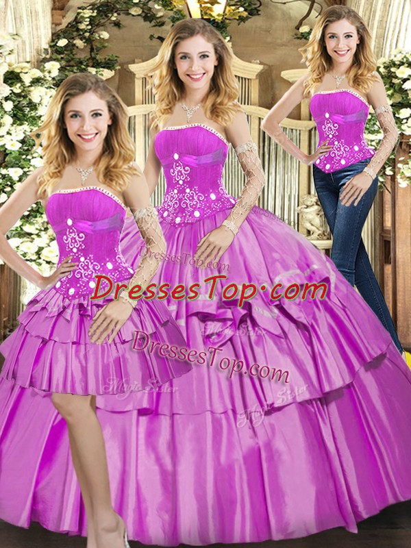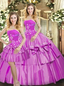 Low Price Strapless Sleeveless Lace Up Quinceanera Dress Lilac Taffeta