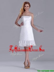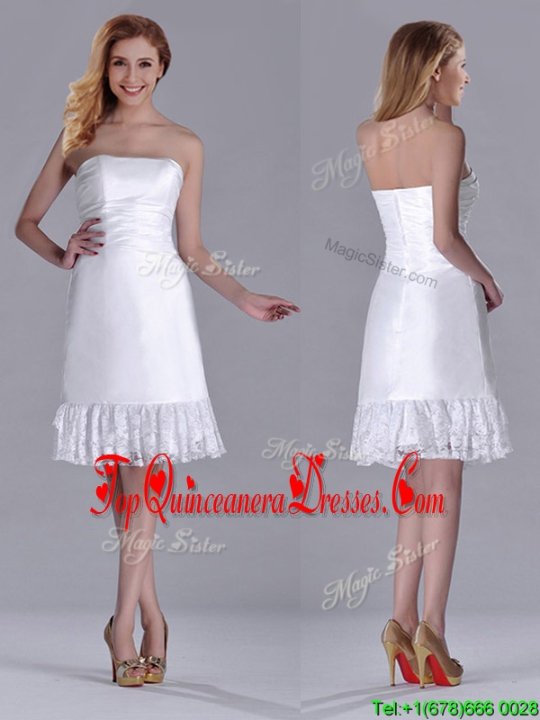 Low Price Strapless White Short Dama Dress in Lace and Satin